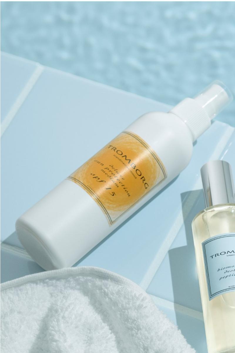 Fløyelsmyk og sunn hud i solen. Full av økologiske ingredienser er Tromborgs Deluxe Sun Protection SPF 15 for både ansikt og kropp en helbredende, fuktighetsgivende og nærende solkrem.