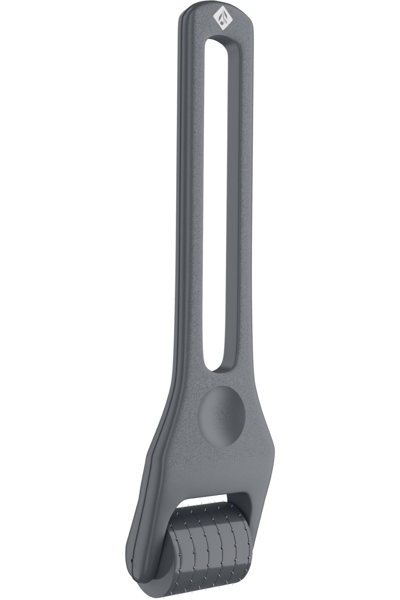 Microneedling instrument med en myk action roller med presis avstand og dybde med 0,1 mm nåler. Laget i rustfritt stål for bruk i ansikt, hals og décolleté.