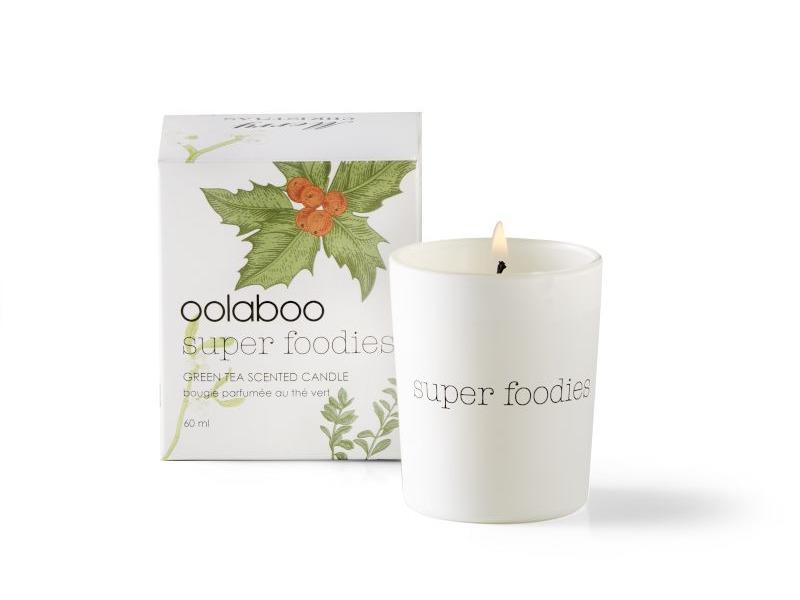 Super Foodies-stearinlyset, er et tradisjonelt stearinlys laget av 100 % øko-soyavoks, helt uten fargestoffer eller andre syntetiske tilsetningsstoffer, i en krukke av resirkulert glass.