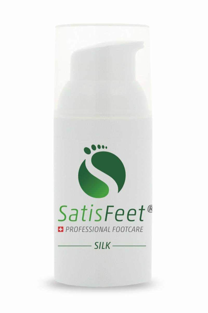 Fotkrem for tørr hud. SatisFeet Silk gir deg silkemyke føtter innen kun 3 uker. Takket være nærende ingredienser som jojoba ekstrakt og silkeprotein, fuktes føttene helt inn i de dypeste hudlagene.